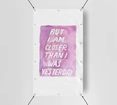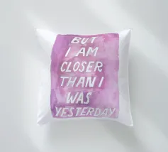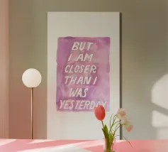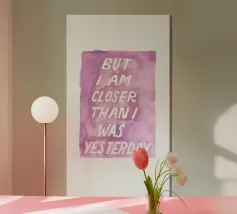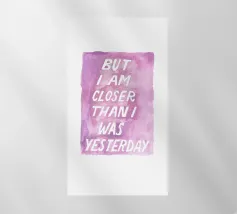 Letterato a mano con acquerello nello stile "Negative Lettering": Ma sono più vicino di ieri