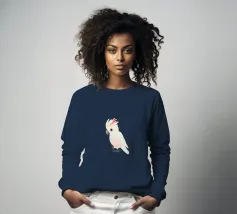 Disegno ad acquerello di un simpatico cacatua dalla cresta sulfurea. Cammina con la cresta gialla alzata.
