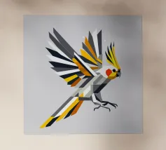 Un vivace cockatiel in stile geometrico. Perfetto per gli amanti degli uccelli esotici e del design moderno, aggiunge un tocco di vivacità a qualsiasi ambiente o abbigliamento. Vivace cacatua in uno stile geometrico unico. Design ideale per gli amanti degli uccelli e degli animali esotici. Porta un'atmosfera tropicale e allegra in qualsiasi ambiente. Versatile come motivo per abbigliamento, accessori o stampe artistiche. Idea regalo perfetta per gli appassionati di design colorati e moderni.