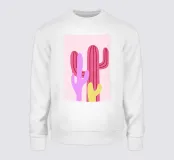 Illustrazione minimale di tre cactus nei toni vivaci del rosa, del viola e del giallo su uno sfondo rosa chiaro.