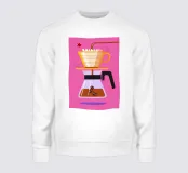 Illustrazione grafica di una caffettiera in azione, su uno sfondo rosa intenso. La rappresentazione moderna e stilizzata è un perfetto omaggio all'arte e al rituale del caffè speciale.