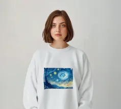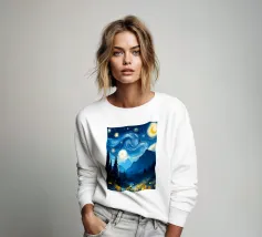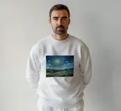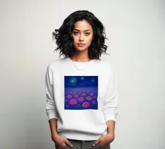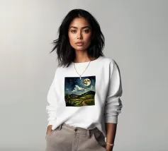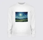 Immerso nella luce argentea, il paesaggio sembra tranquillo e surreale: un luogo dove il tempo rallenta e il mondo respira dolcemente. La luna aleggia come un guardiano vigile, illuminando erbe, ombre e immaginazione. Quest'opera invita alla riflessione, alla meraviglia e a un senso di pacifica solitudine nella vastità della notte.