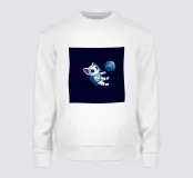 Un gatto tagliato sta fluttuando nello spazio come un astronauta. il gatto sta cercando di afferrare la terra o un pianeta simile.