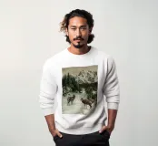 Un suggestivo motivo invernale: tre cervi si ergono maestosi in un paesaggio montano innevato, con abeti e cime sullo sfondo. I colori naturali e l'atmosfera tranquilla rendono questo disegno perfetto per gli amanti della natura e degli animali. Che si tratti di un murale, di un cuscino, di una tazza o di un poster, questo motivo porta il romanticismo invernale della fauna selvatica, l'eleganza e la tranquillità in ogni casa.