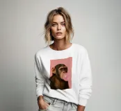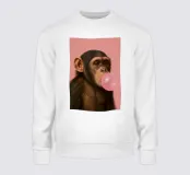 Un ritratto divertente e sfacciato di uno scimpanzé che soffia una bolla di bubblegum rosa lucido su uno sfondo pastello. Questa spiritosa opera d'arte animale conferisce personalità e fascino a qualsiasi spazio, perfetta per gli amanti degli animali, per gli interni moderni o per le collezioni di arte murale eccentrica.
