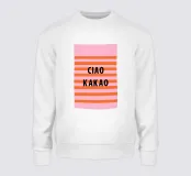 "Ciao Kakao" - una striscia d'addio alla moda in una tipografia elegante che combina il fascino italiano con un'allegra tavolozza di colori rosa e arancione. Ideale per un poster moderno e minimalista!