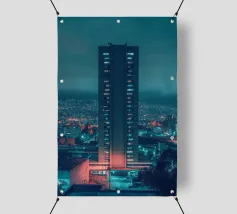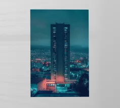Questa fotografia di Città del Messico cattura l'eleganza di un grattacielo solitario, che si erge fiero in un'atmosfera notturna avvolta da lampi di luce. Un omaggio all'urbanistica.