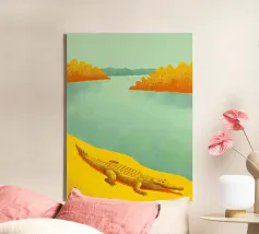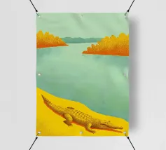 Catturate la bellezza di un coccodrillo in riva al fiume con questa illustrazione dettagliata! Questo disegno presenta un coccodrillo sullo sfondo di un fiume sereno, ricco di dettagli ipnotici.