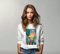 Un collage vibrante e caotico di motivi contrastanti, tra cui righe, pois e forme organiche. La gioiosa esplosione di colori e texture crea un'opera d'arte energica e piena di vita.