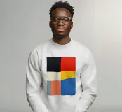 Questa opera d'arte presenta un insieme di audaci forme geometriche disposte a griglia.