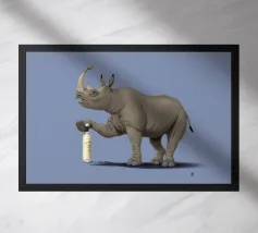 Con un po' di spiritoso rispetto e omaggio all'artista Albrecht Dürer! Il rinoceronte stappa il tappo per celebrare il talento di questo e di tutti i creativi del mondo.