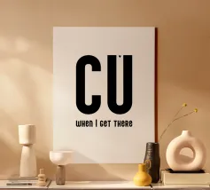 Ci vediamo quando arrivo. Espressione e tipografia in nero e bianco (trasparente). È possibile cambiare il colore dello sfondo. Poster tipografico minimalista.