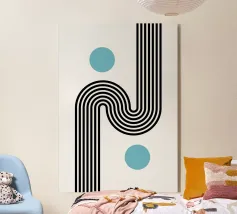 Introducete un tocco sofisticato al vostro arredamento con questo suggestivo poster astratto moderno e minimalista. Il disegno presenta eleganti linee nere che si curvano e si intersecano con grazia, creando un senso di movimento fluido e di profondità. Due sereni cerchi verde acqua punteggiano la composizione, aggiungendo un sottile tocco di colore ed equilibrio. Questo pezzo incarna magnificamente i principi del design astratto e minimalista, offrendo un'esperienza visiva accattivante. Stampata a una risoluzione eccezionale di 7000x5000 pixel a 300 dpi, questa opera d'arte digitale di alta qualità garantisce dettagli nitidi e colori vividi, rendendola un'opera di grande effetto.