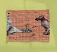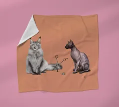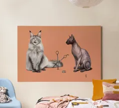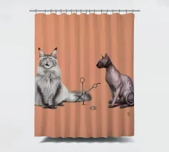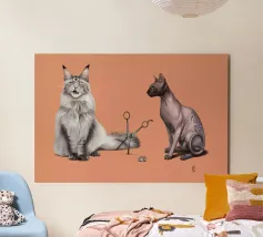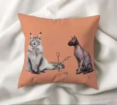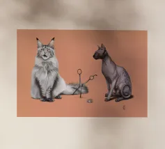 Un'illustrazione comica delle stranezze della pronuncia. Alcuni dicono Cut, altri dicono Cat, e tutto dipende dal divario tra nord e sud. Qui abbiamo il più peloso dei gatti, il Maine Coon, e il gatto meno peloso, il gatto sfinge, che si scontrano sul modo in cui la loro specie viene scambiata per il taglio delle forbici.