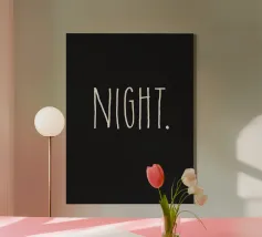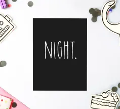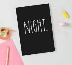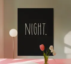 Il design chiaro e minimalista "NIGHT." combina una semplice tipografia bianca con uno sfondo scuro e profondo. Perfetto per chiunque voglia fare una dichiarazione moderna e minimalista. Che si tratti di un murale in camera da letto, di cuscini accoglienti o di magliette alla moda, questo disegno conferisce uno stile senza tempo e tranquillità a qualsiasi casa. Ideale anche come regalo per gli amanti del design o per i nottambuli.