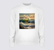 Questo dipinto a olio cattura la potenza e la bellezza delle onde d'altura. Onde imponenti si alzano e si impennano, rese con audaci pennellate di blu profondo, verde mare e bianco spumeggiante, creando contrasti sorprendenti. La luce del sole si riflette sulla superficie dell'oceano, scintillante e mutevole. Il dipinto evoca un senso di libertà, la maestosità della natura e la sconfinata energia del mare.