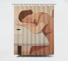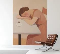 Donna addormentata sul tavolo con un bicchiere di caffè con pittura fauvismo stile arte