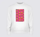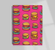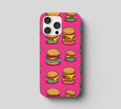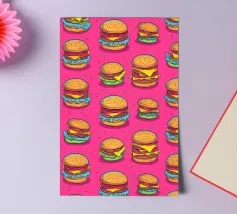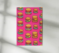 Questa vibrante illustrazione pop art celebra il mondo colorato dei fast food con un hamburger astratto che brilla di colori al neon e cattura in modo creativo la gastronomia della cultura pop.