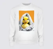 Un simpatico anatroccolo fa capolino da sotto un morbido asciugamano bianco. Le sue soffici piume gialle e i suoi occhi curiosi creano una scena adorabile e affascinante.