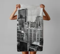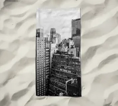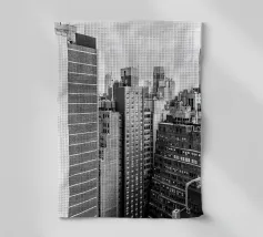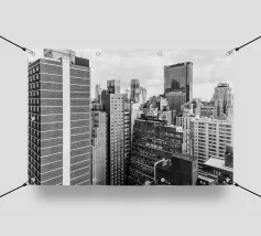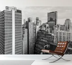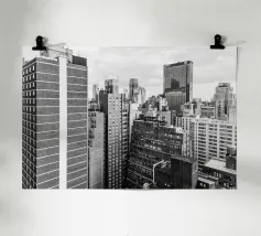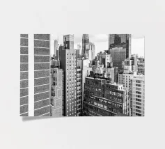 La splendida fotografia in bianco e nero cattura lo skyline di Manhattan, mostrando gli imponenti grattacieli e le loro eleganti facciate in una composizione geometrica da una prospettiva aerea. Con riflessi visibili alla luce del giorno, questo poster di lusso incarna l'arte moderna ed è un'aggiunta elegante agli interni contemporanei.
