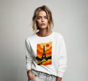 Immergetevi in un'atmosfera calda e poetica con questa vibrante illustrazione della Torre Eiffel al tramonto. Con le sue linee ondulate e le tonalità arancioni, questo poster trasforma l'iconico monumento in un'opera d'arte davvero retro-moderna. Perfetto per arricchire qualsiasi interno con un tocco parigino audace e di design.