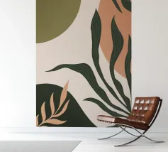 Questo design di ispirazione botanica combina eleganti motivi di foglie con armoniose tonalità di verde e caldi colori della terra. I morbidi contrasti e le linee curve creano un'atmosfera rilassante e moderna. Ideale per murales, cuscini, tazze o cover per cellulari, questo motivo si adatta perfettamente a soggiorni, uffici o come regalo per gli amanti del design. Un'opera d'arte senza tempo per tutti coloro che apprezzano la natura e il minimalismo.
