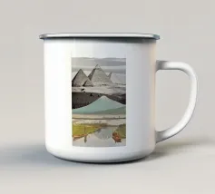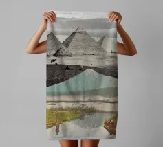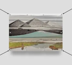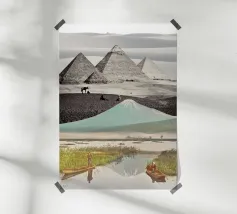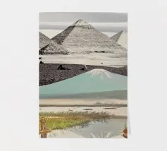 Un terreno da sogno cucito dal tempo e dal mito: All At Once fonde tre paesaggi iconici in un mondo surreale e senza luogo. Il tranquillo specchio del Monte Fuji di Kashiwabara (1896, Kazumasa Ogawa) si innalza nella silhouette delle Piramidi di El-Geezeh di Frith del 1858, il tutto coronato dalle eteree dune di White Sands, nel Nuovo Messico, catturate dalla NASA. Insieme, queste scene dissolvono la geografia e la cronologia per evocare una tranquilla meraviglia cinematografica, dove vulcani e faraoni si incontrano davanti a dune simili a nuvole. Un portale per il muro e un pellegrinaggio per l'occhio.