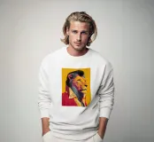 Questo vibrante ritratto di Elvis Presley come un leone celebra il Re del Rock'n'Roll in uno stile pop art unico. Con uno sfondo giallo brillante e colori al neon, la grafica cattura la natura selvaggia dell'icona della musica e combina la cultura pop con l'eleganza degli animali.