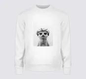 Il ritratto di un simpatico suricato con una corona di fiori cattura il suo carattere giocoso in bianco e nero ed è perfetto per gli amanti degli animali. Gli occhi espressivi e la pelliccia aggiungono un tocco affascinante all'illustrazione.