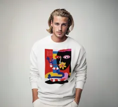Un potente ritratto astratto in cui un volto viene decostruito in forme geometriche audaci e in una tavolozza di colori vibranti. Un'unica lacrima in evidenza suggerisce un'emozione profonda, creando un'opera di grande impatto visivo che esplora i sentimenti attraverso l'arte moderna.