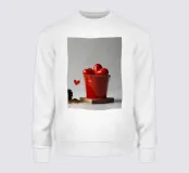 Un escavatore giallo è posizionato accanto a una benna rossa piena di oggetti a forma di cuore, che simboleggiano l'amore. L'ambientazione è caratterizzata da un terreno soffice, che aggiunge un tocco unico al tema di San Valentino.
