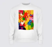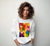 Colori vivaci si fondono in forme dinamiche, creando una composizione gioiosa ed energica. L'assortimento di tonalità offre un'esperienza visiva sorprendente e piena di movimento.