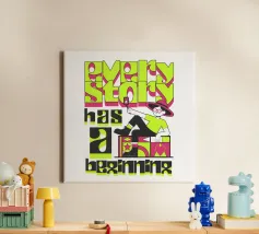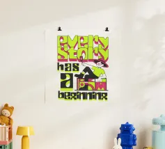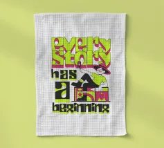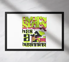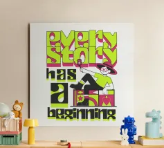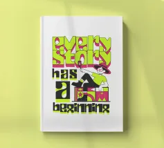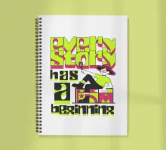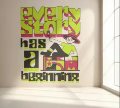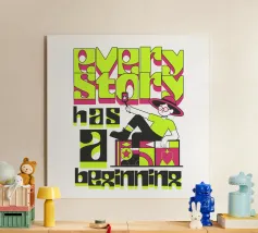 Stile retrò e motivazionale. Every Story Has a Beginning" per abbigliamento e accessori con un tocco artistico.