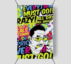 Le opere di Josh Ruggs guardano in modo satirico al sogno americano e a tutti i discorsi sociali, politici e culturali che vi ruotano attorno. Utilizza oggetti familiari di uso quotidiano, celebrità ed estetica comica, chiaramente nella tradizione della Pop Art, come strumenti per visualizzare queste narrazioni della cultura di massa, del consumo e del culto della personalità. Per creare le sue immagini multistrato, l'americano lavora con spray, pittura acrilica, olio, inchiostro e praticamente con ogni superficie che gli capiti sotto mano.