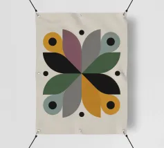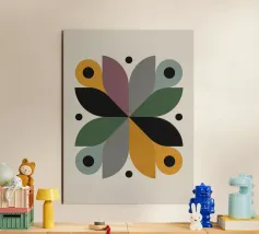 Poster moderno con forme geometriche in caldi colori autunnali. Questo disegno astratto dona equilibrio e eleganza autunnale alle pareti, perfetto per il soggiorno, l'ufficio o come decorazione stagionale.