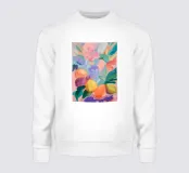 Un'opera d'arte colorata e astratta che cattura la vivacità della natura con pennellate dinamiche. Le vibranti tonalità di rosa, arancione e verde si fondono in un gioco estivo di frutta, foglie e forme floreali. Il motivo irradia gioia di vivere e ricorda le calde giornate estive e la libertà creativa.