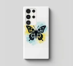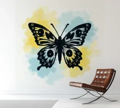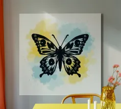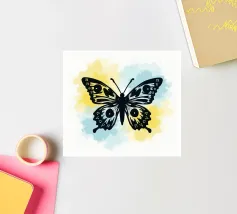 Una farfalla con un raro disegno sulle ali. Sullo sfondo la luce del sole sul lago.