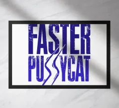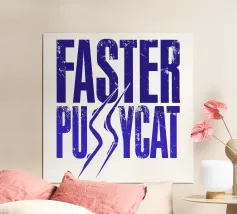 Quest'opera d'arte da parete presenta un design tipografico di grande impatto, con scritte audaci e rovinate in un gradiente blu intenso che conferisce un'estetica rock e grintosa.