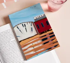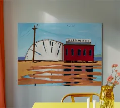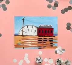 Una carrozza ferroviaria rossa d'epoca con la scritta "BOARDWALK" è ferma in un paesaggio che evoca la nostalgia dell'epoca d'oro dei viaggi in treno.