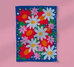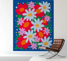 La vivace tavolozza di blu brillanti, toni caldi e verdi botanici rende questo pezzo una splendida celebrazione del massimalismo moderno. Perfetta per chi ama le decorazioni audaci e di impatto, quest'opera d'arte dona energia, fascino e bellezza ispirata alla natura a qualsiasi ambiente.
