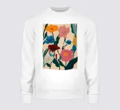 Un dipinto floreale giocoso con colori audaci e pennellate morbide, che celebra la bellezza della natura.