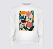 Un dipinto floreale giocoso con colori audaci e pennellate morbide, che celebra la bellezza della natura.