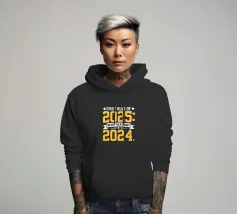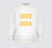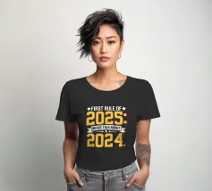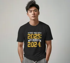 Il testo giallo e bianco in grassetto recita umoristicamente: "Prima regola del 2025: Non parlare mai del 2024".
