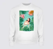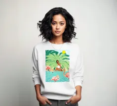 Galleggia in un mondo in cui fiorisce l'immobilità, dove i fenicotteri scivolano, i petali vanno alla deriva e persino un leopardo a riposo sembra sognare. Sospesa nell'acqua e nella meraviglia, è trattenuta dalla quieta magia di un momento che sembra allo stesso tempo indomito e completamente in pace.