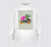 L'eccentricità incontra la botanica in questa stravagante stampa d'arte a collage con un'auto d'epoca trasformata in una fioriera nel deserto, completa di cactus in fiore, girasoli per le ruote e un passero appollaiato. Le vivaci forme astratte in rosa caldo e verde acqua aggiungono un tocco giocoso allo sfondo tenue, rendendo questo pezzo un accento divertente e moderno per interni eclettici, spazi boho o amanti dell'arte surreale.