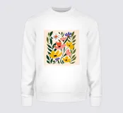 Una serie colorata di fiori stilizzati è rappresentata su uno sfondo chiaro, con un mix di fiori rossi, gialli, viola e bianchi circondati da foglie verdi. Il design audace e semplicistico conferisce un'atmosfera fresca e moderna alla composizione floreale.