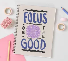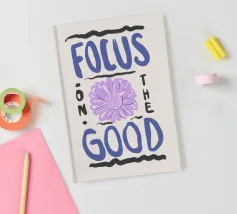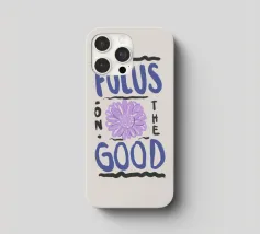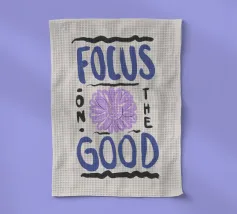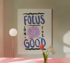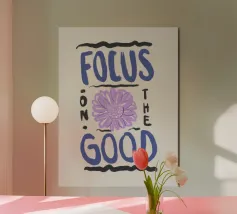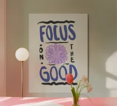 Citazione moderna ispiratrice disegnata a mano in blu con girasole viola e sfondo beige