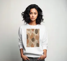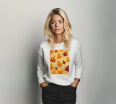 Vibranti foglie autunnali di diverse forme e sfumature si disperdono su uno sfondo chiaro, evidenziando la diversità del fogliame autunnale. Questa opera d'arte cattura l'essenza del colore autunnale.