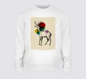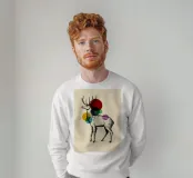 Una graziosa illustrazione a inchiostro nero di un maestoso cervo, ornata da audaci cerchi colorati sovrapposti che aggiungono un tocco moderno alla classica figura del bosco. Questo pezzo simboleggia l'equilibrio tra natura e arte astratta, rendendolo ideale per interni rustico-moderni o eclettici.