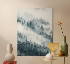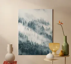 Immergetevi nella tranquilla bellezza di una foresta invernale avvolta nella nebbia. Questo disegno presenta alberi innevati avvolti da una mistica nebbia, che conferisce alla vostra casa un'atmosfera invernale e pacifica. I toni morbidi del grigio e del bianco creano uno sfondo rasserenante, perfetto per opere d'arte da parete, tazze, cuscini e altro ancora. Ideale per gli amanti della natura e per chiunque voglia sentire la magia dell'inverno. Portate la magia della foresta di nuvole nella vostra casa e godetevi l'eleganza senza tempo di questo design.